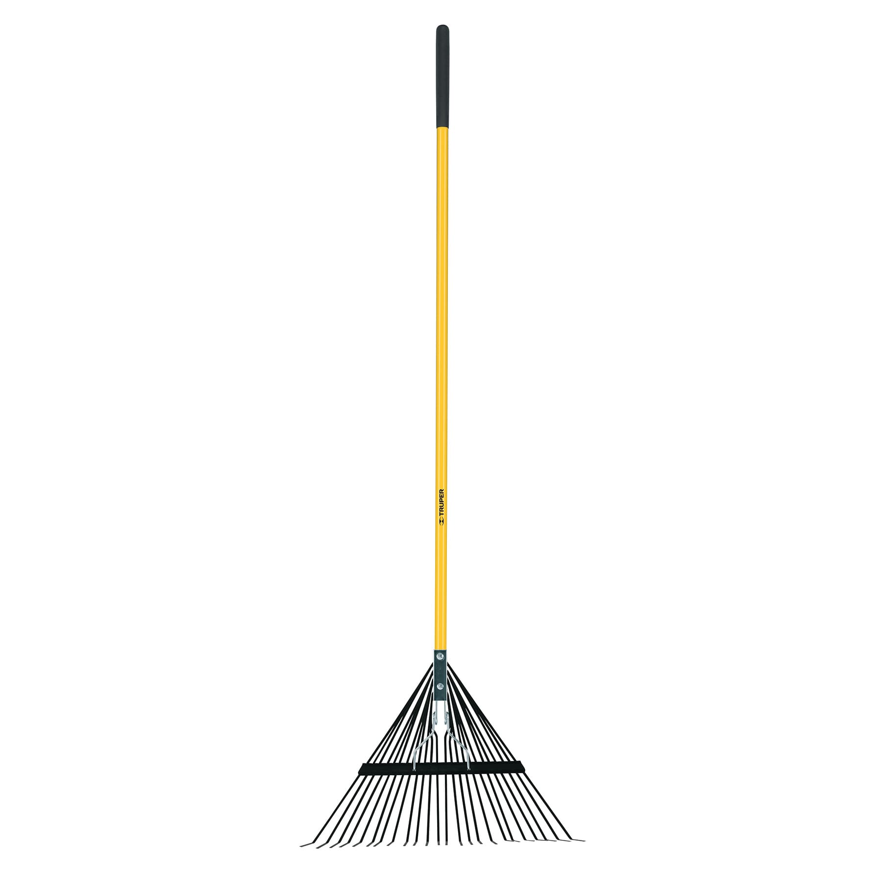 Especificaciones: Ancho de cabeza 24" (61 cm), cabeza recta, calibre 19, diámetro del mango 1 3/32" (2.5 cm), longitud del mango 54" (137 cm), 24 dientes, temple de fleje 35-55 HRc Cabeza fabricada en acero con dientes planos, acabado en pintura electrostática color negro Mango reforzado fabricado en madera estufada de pino con acabado pulido Tensor que mantiene los dientes en su posición Diseño de diente continuo que duplica la vida útil en trabajo pesado