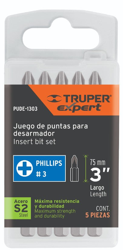 Expert PUDE-1303 Puntas Phillips #3, 3', estuche con 5 piezas, Expert