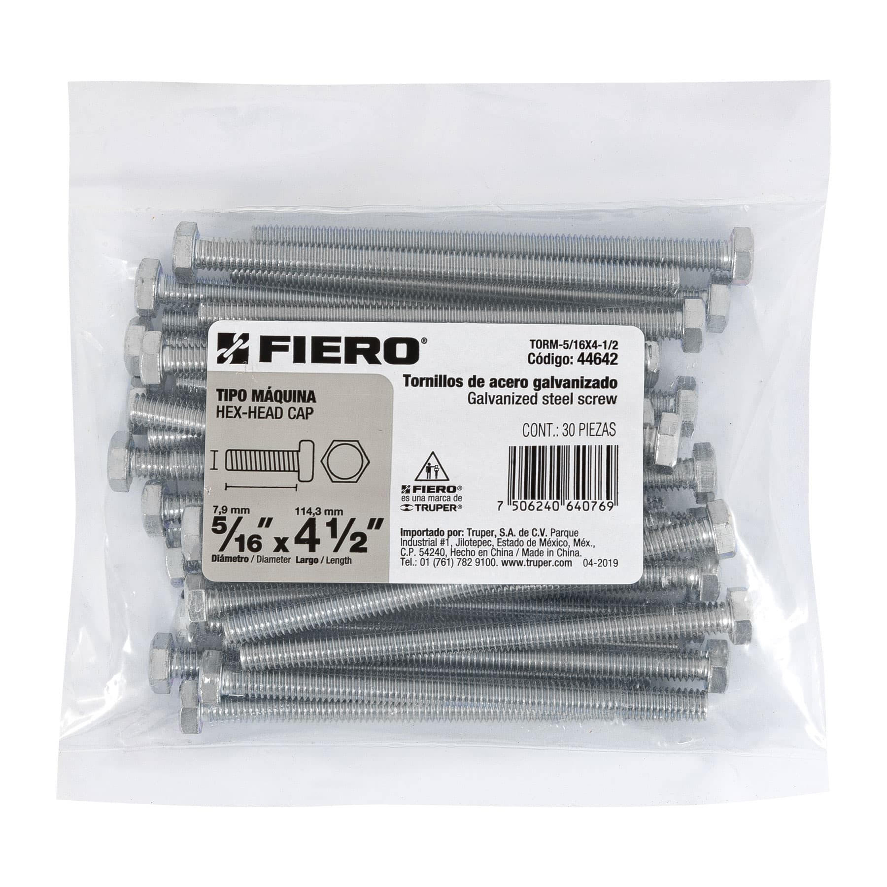 Fiero TORM-5/16X4-1/2 Bolsa con 30 tornillos 5/16' x 4-1/2' tipo máquina