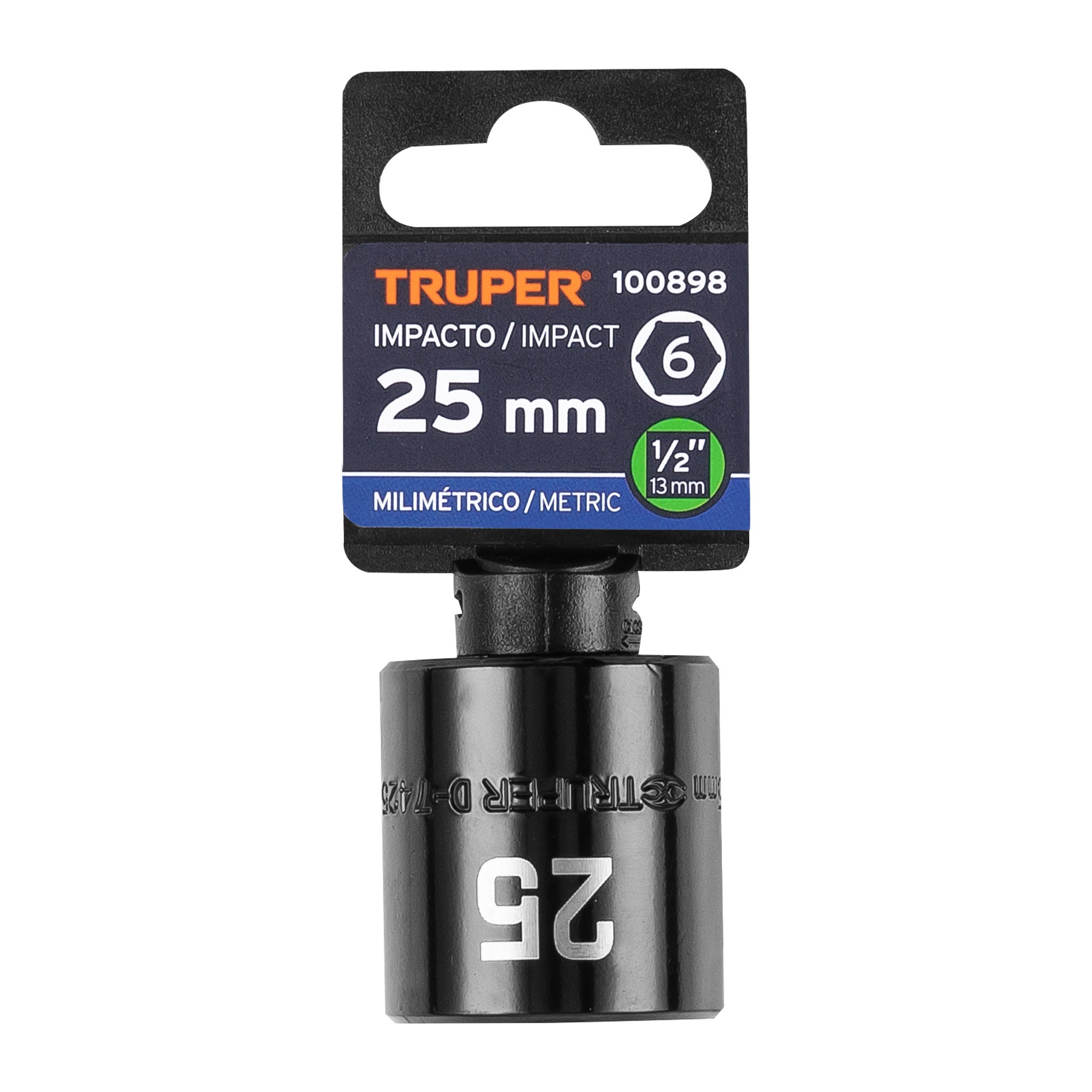 Truper D-7425-M Dado de impacto de 25 mm, 6 puntas, cuadro 1/2'