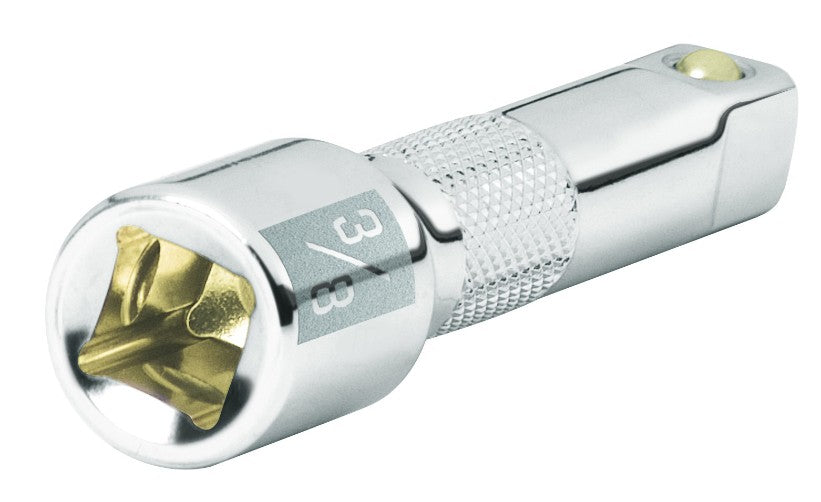 Especificaciones: Cuadro mando 3/8" (9.5mm), diámetro 13 mm, dureza 60 HRc, longitud 3" (76mm), peso 72.5 g, torsión máxima 1,200 lb/in, Fabricada en acero al cromo vanadio