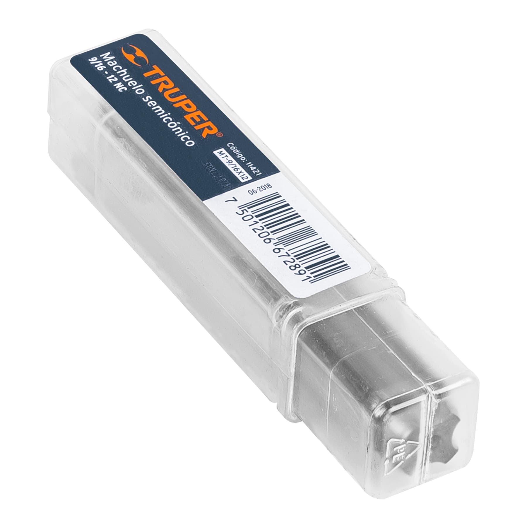 Truper MT-9/16X12 Machuelo semicónico 9/16' x 12 NC, estuche individual