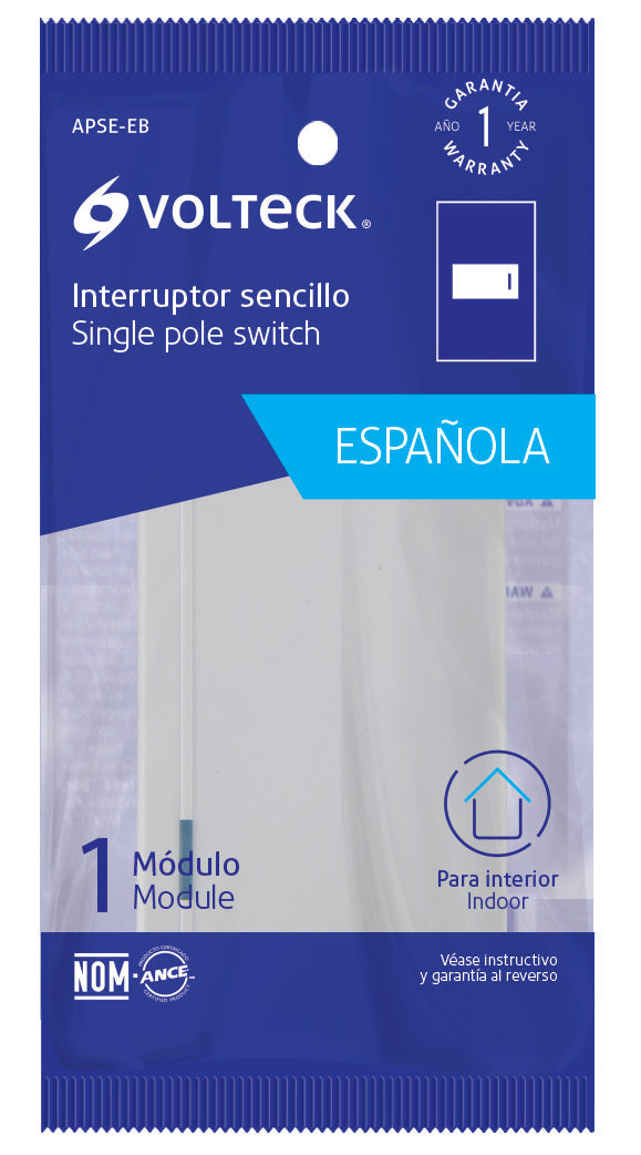 Volteck APSE-EB Interruptor sencillo 1 módulo, línea Española, color blanco