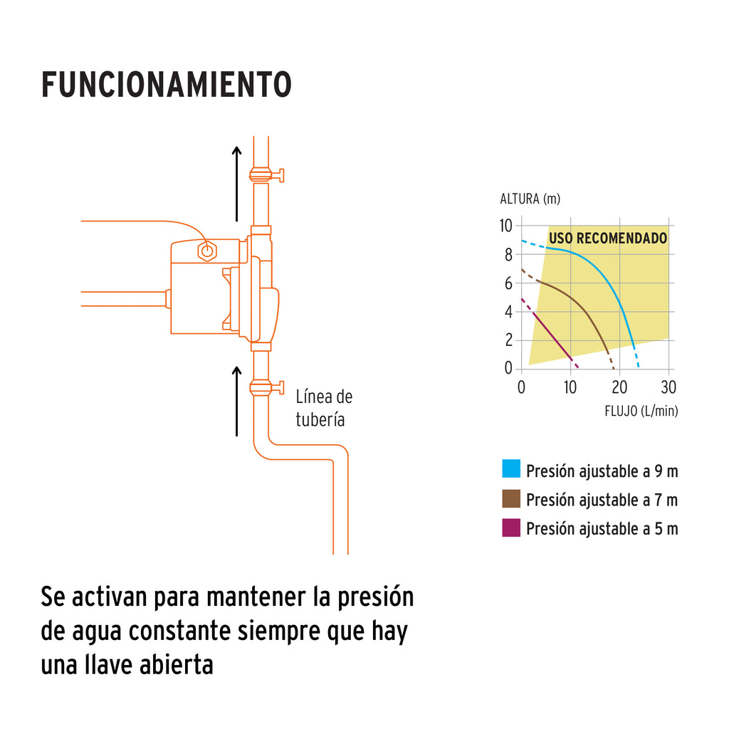 Incrementa y mantiene la presión de agua constante al detectar presencia de flujo