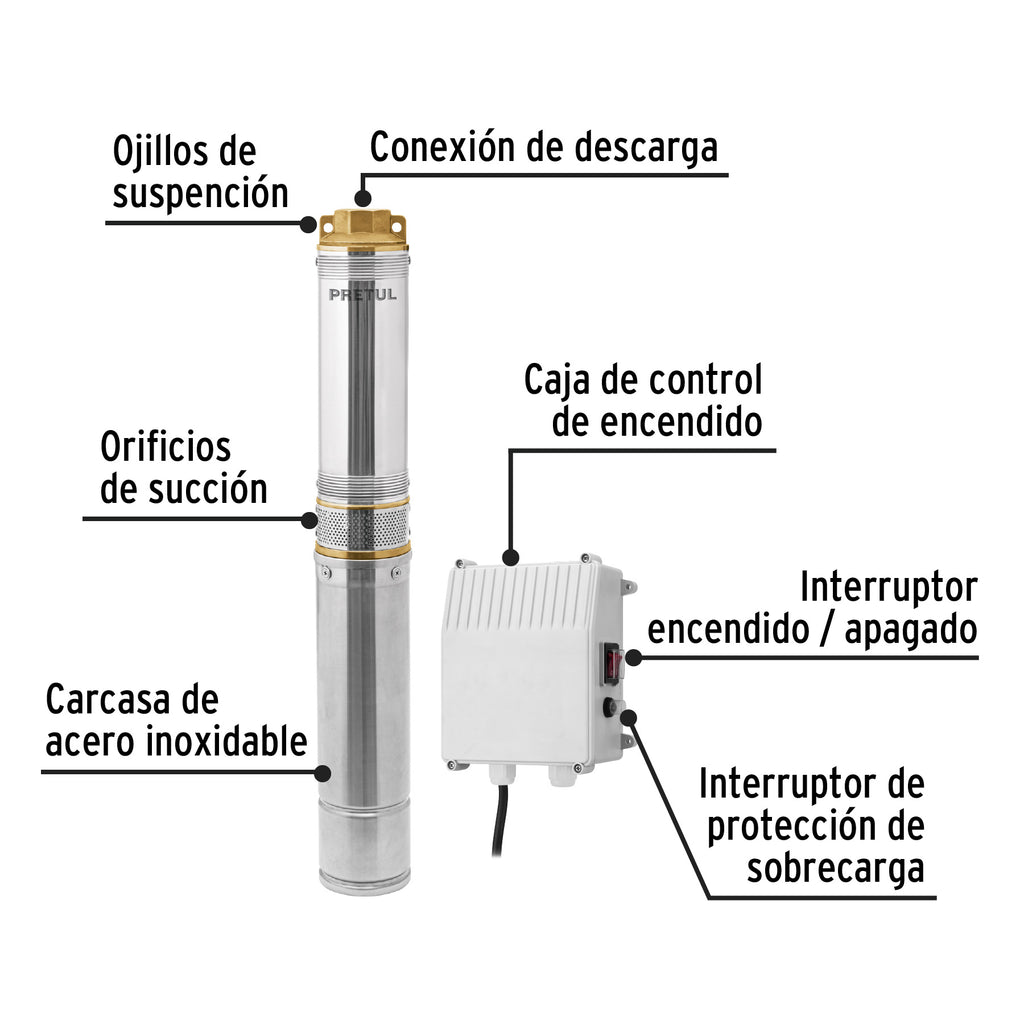 Cuerpo de acero inoxidable, que la hace más resistente a la corrosión y motor con bobinas de aluminio
