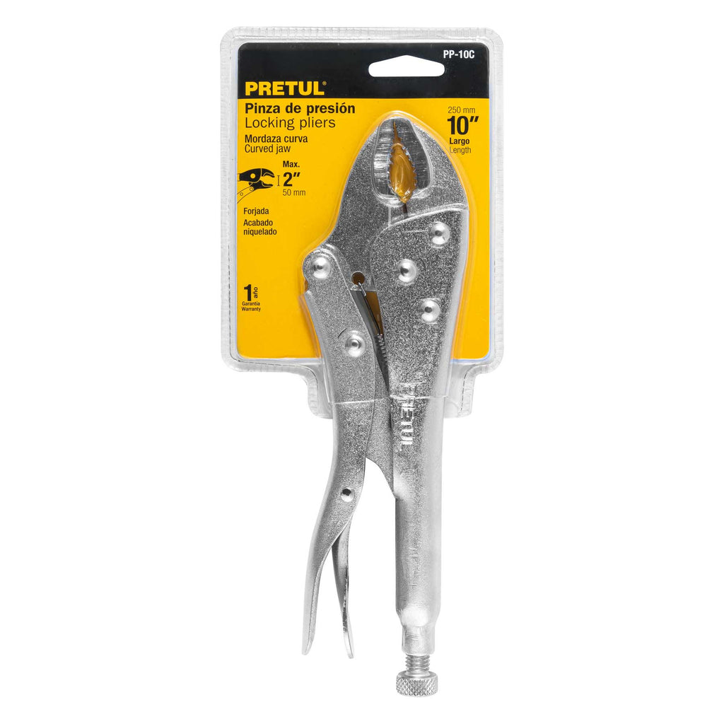 Especificaciones: Ajuste de mordaza 0 a 47mm, ancho de mordaza 12.1mm, dureza de mordaza 52HRc, longitud 10" (254mm), peso 600g