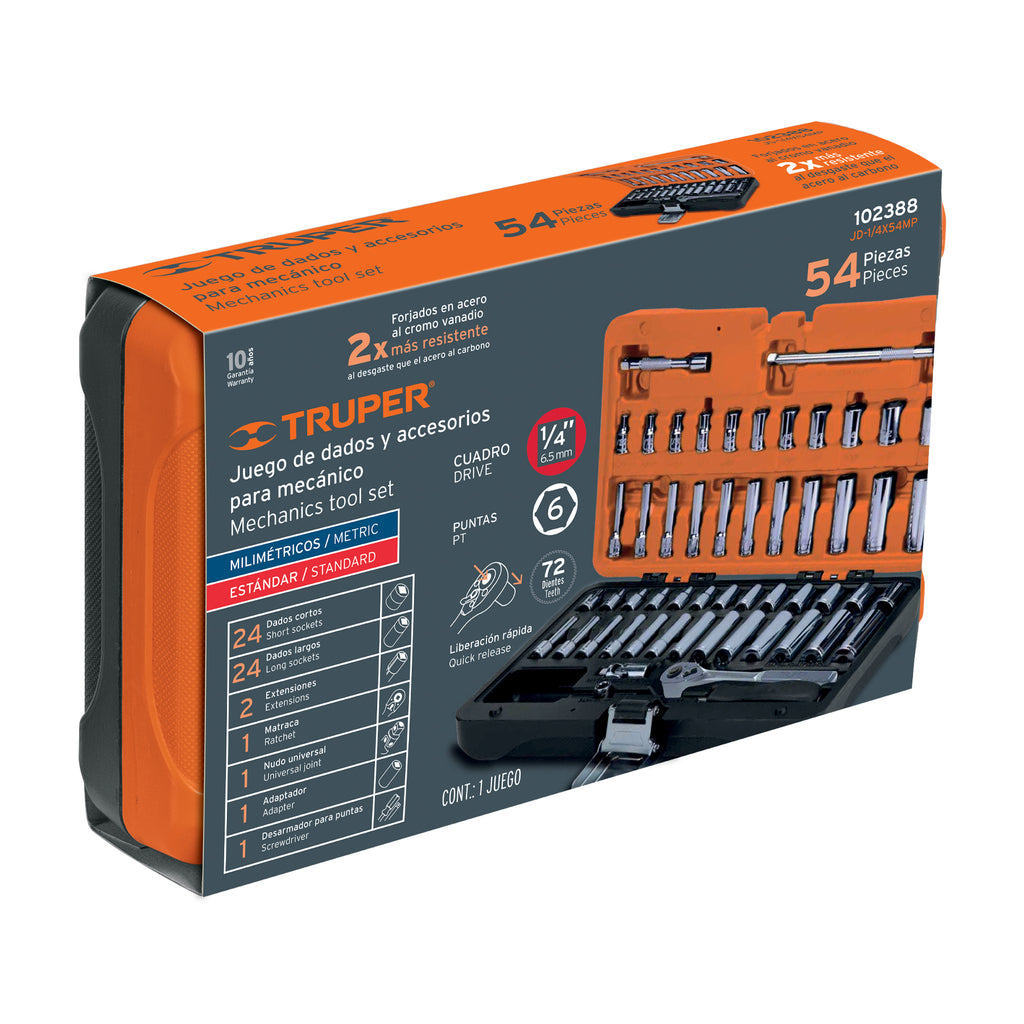 Dados en acero al cromo vanadio Matraca de mango plano Estuche resistente de plástico inyectado que mantiene las piezas organizadas Herramienta marcada para fácil identificación
