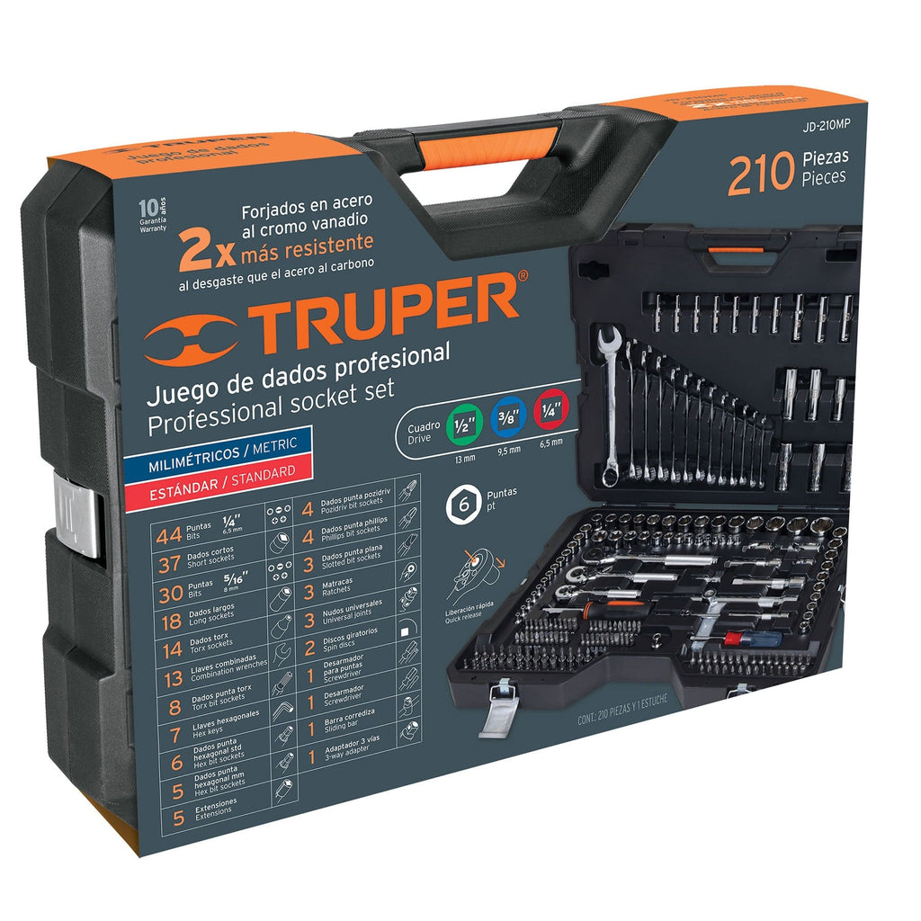 Truper JD-210MP Juego de herramienta para mecánico, mixto, 210 piezas
