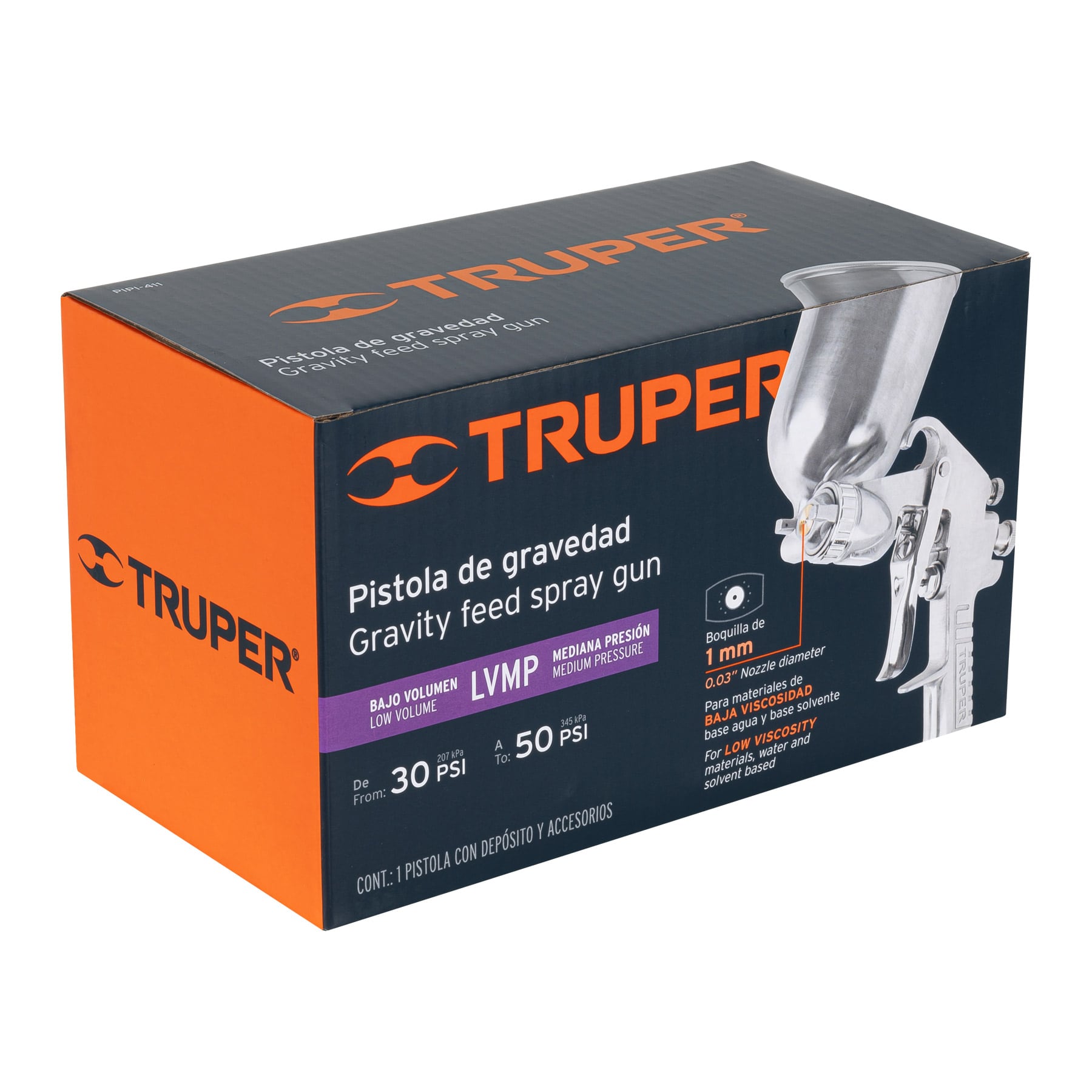 Truper PIPI-411 Pistola p/pintar gravedad LVMP,vaso aluminio, boquilla 1.0mm