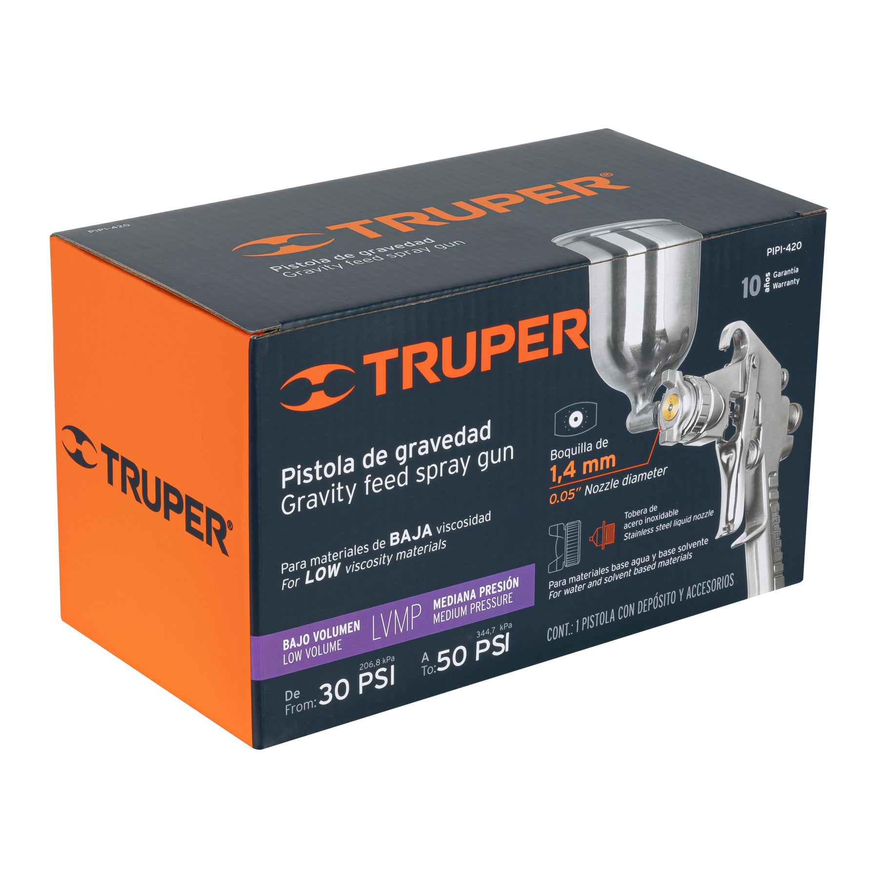 Truper PIPI-420 Pistola p/pintar gravedad LVMP, vaso aluminio, boq 1.4 mm
