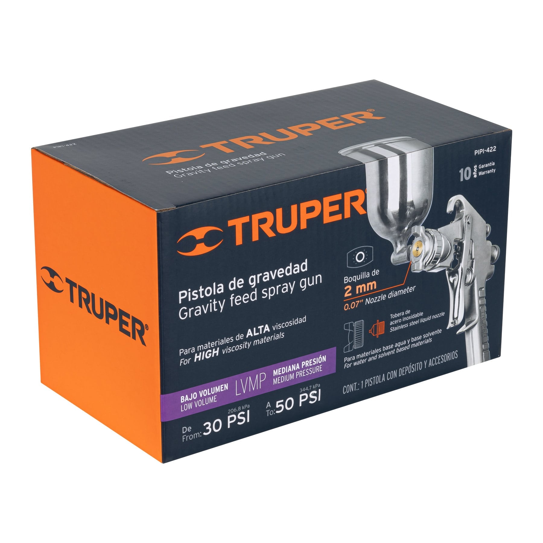 Truper PIPI-422 Pistola p/pintar gravedad LVMP, vaso aluminio, boq 2.0 mm