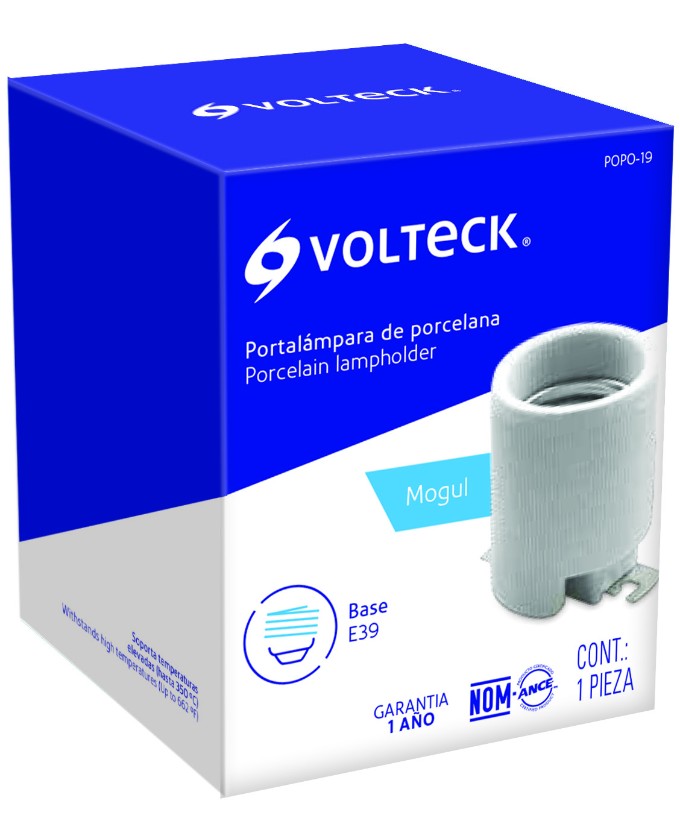 Volteck POPO-19 Portalámpara de porcelana, base tipo Mogul (E39), Volteck